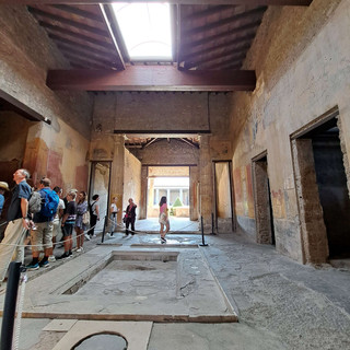Many houses had a large entry way, often covered in a mosaic, and detailed frescoes with bright colours and designs. They were beautiful and well preserved, allowing one to imagine the high class life people would have lived. Snakes were a common symbol on the frescoes, representing abundance, good fortune and fertility. Many paintings were preserved that involved snakes, along with different Greek and Roman gods.